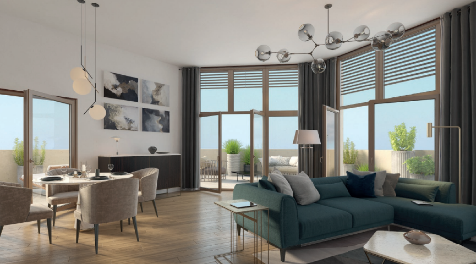 Ses lignes élégantes et intemporelles reprennent les codes des classiques de l'architecture. Appartements se prolongent sur de vastes loggias, d'agréables balcons ou de grandes terrasses plein ciel.